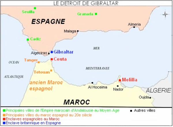 Gibraltar est un territoire britannique d'outre-mer, situé au sud de la péninsule Ibérique, en bordure du détroit de Gibraltar qui relie la Méditerranée à l'océan Atlantique. Il correspond au rocher de Gibraltar et à ses environs immédiats et est séparé de l'Espagne par une frontière de 1,2 kilomètre.