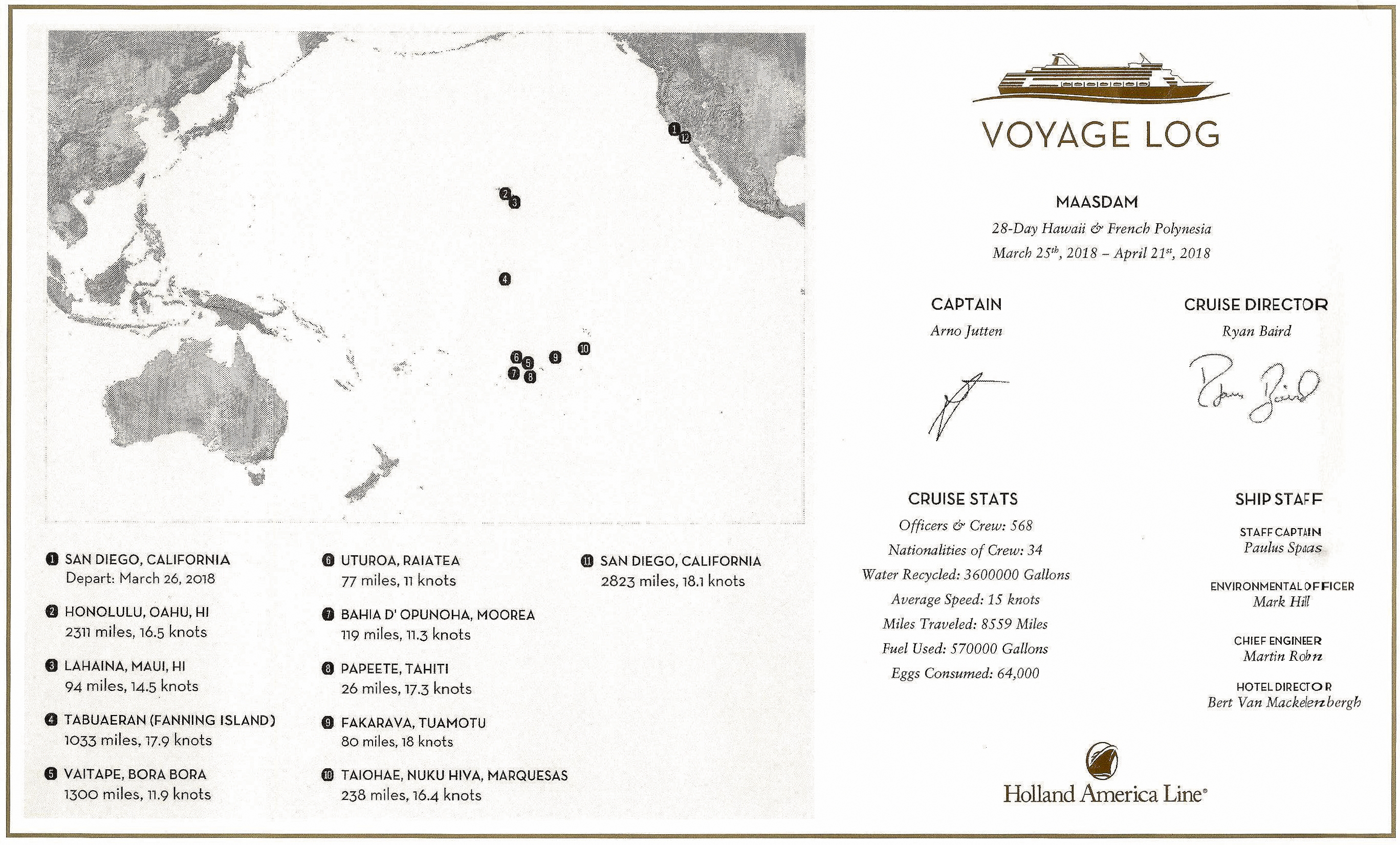 | Le bateau : | MS Maasdam — Nos certificats |