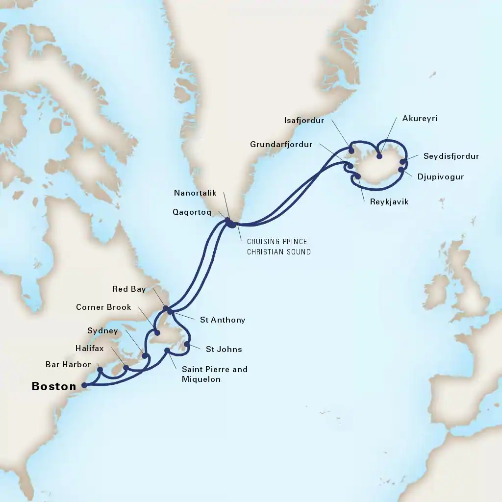 Nous avons suivi leur itinéraire en passant par l’Islande, le Groenland, le Labrador, Terre-Neuve, Nouvelle-Écosse, St-Pierre-et-Miquelon en terminant par la Nouvelle-Angleterre vers Boston.