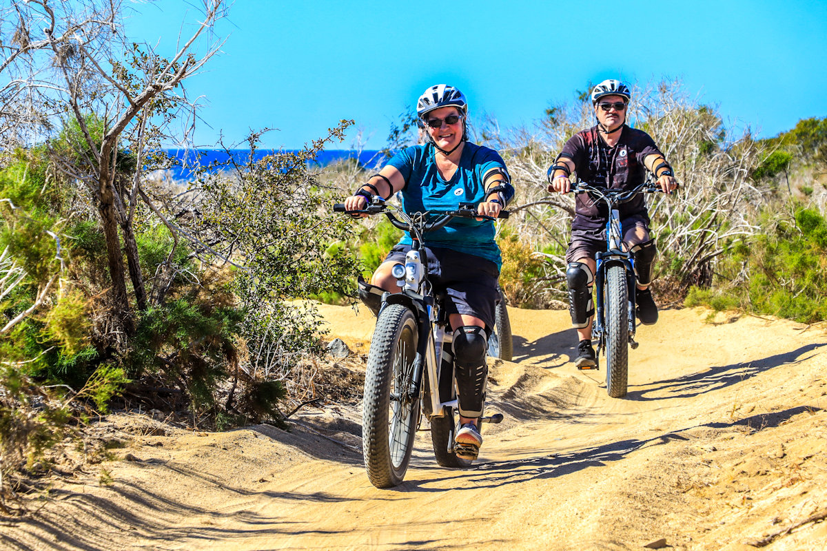 Nous avons eu la chance d’expérimenter du bicycle électrique avec pneus ballounes soit en traversant des pistes et une plage de sable.