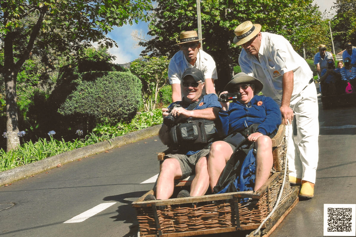 Nous avons vécu une belle aventure à Funchal soit la descente en luge sur une distance de 2 km , une descente en pente secondée de portugais.