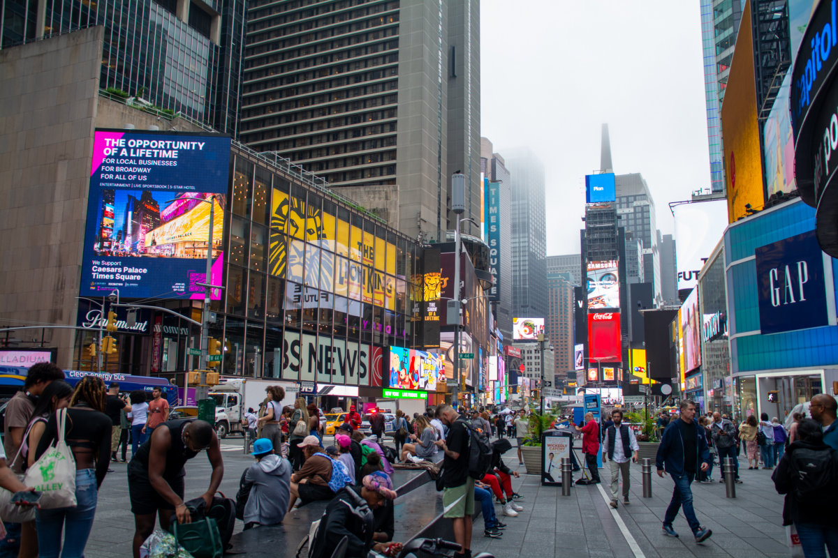 Times Square, « Le carrefour du monde », est l'une des intersections les plus populaires du monde, et le quartier des Théâtres de Broadway est la plaque tournante du spectacle dans le pays tout entier et un centre majeur de l'industrie du divertissement dans le monde.