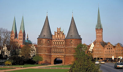 La porte de Holstein (photo ci-dessus) est, avec le Burgtor l’une des deux portes de ville subsistantes des fortifications médiévales de la ville de Lübeck, en Allemagne.