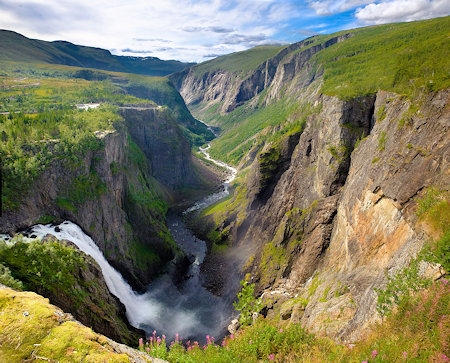 Vøringfossen (photo ci-dessus) est la plus haute cascade 83e en Norvège sur la base totale de chute.