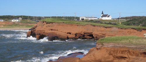 En continuant vers l’Île de la Grande-Entrée, la route panoramique passe près des lagunes et de quelques maisons bien protégées du vent du nord par le Cap Nord-Est, c’est East-Cape.