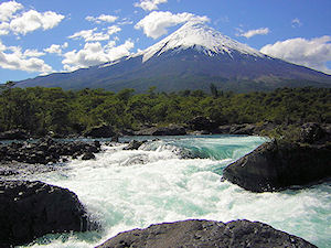 Saltos de Petrohue est une cascade de type goulotte de la rivière Petrohué au Chili,